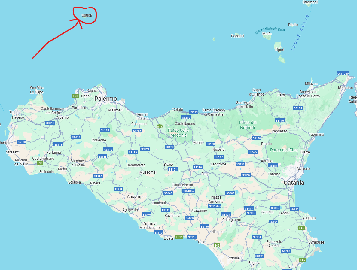 Wij gaan naar een klein eilandje ten noorden voor de kust van Sicilie. Dit eilandje heet Ustica.